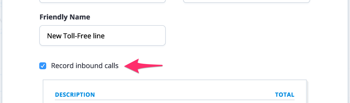 3\. Check or uncheck on **Record inbound calls** if you want to enable or disable call recording on this number.