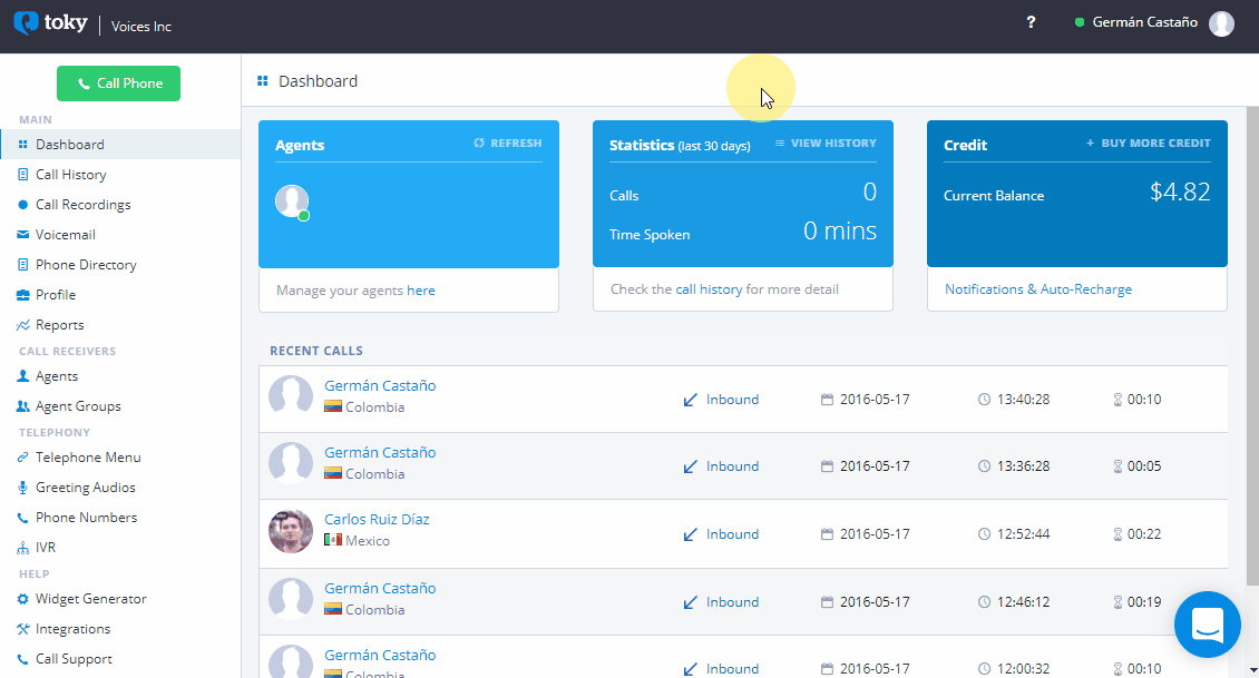 1. In the **Dashboard**, click on [**agents**](https://beta.toky.co/business/agent/list).