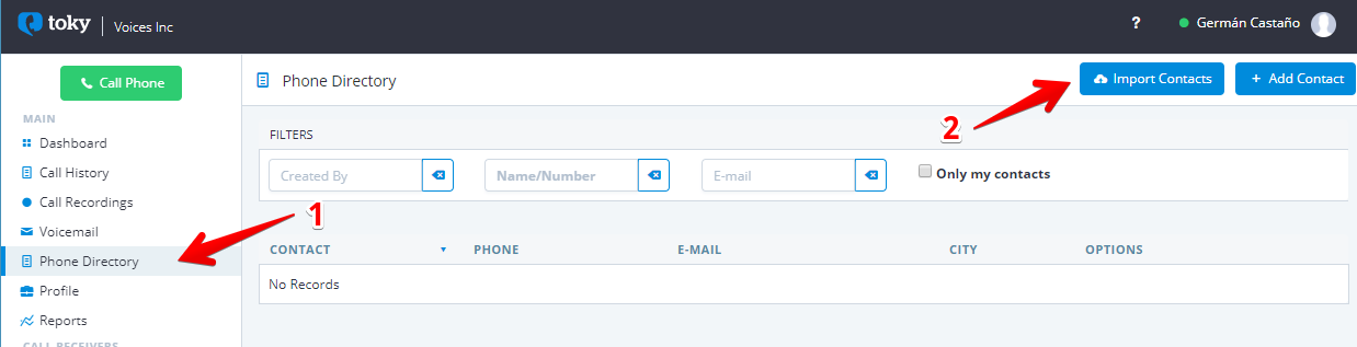 If you already have your own list of contacts, you can do a massive import to Toky loading a file in CSV format (Comma Separated Values).