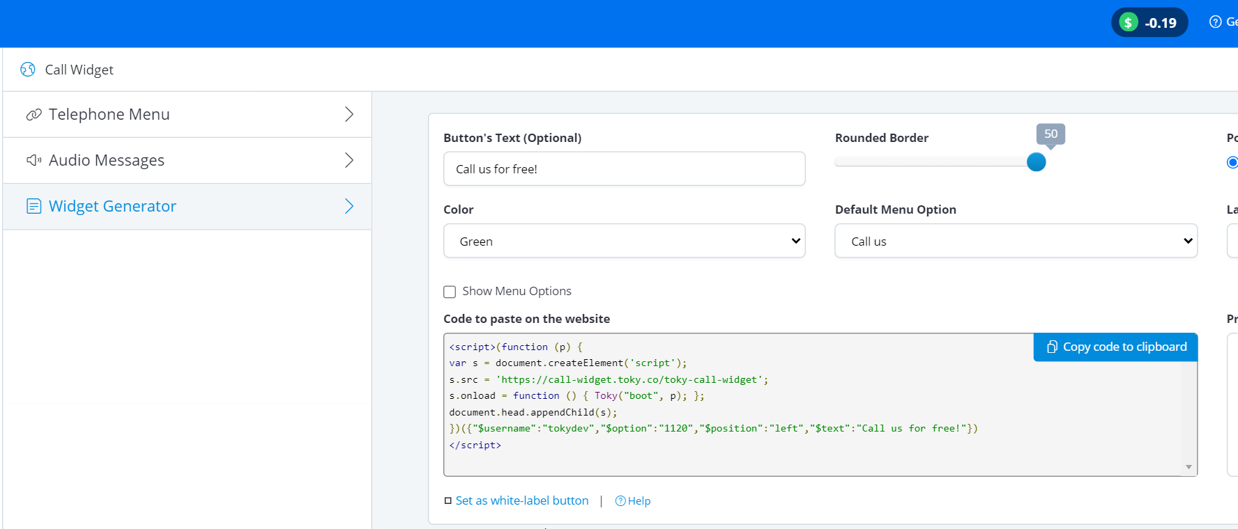 The widget is a piece of HTML code that you can paste on your website that will let your visitors see a **call button** whenever they visit your page.