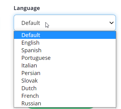 The default behavior of the widget is to render the language of the browser, provided the browser is in one of the supported languages. Currently, *English*, *Spanish*, *Portuguese*, *Italian*, and *Persian* are supported.