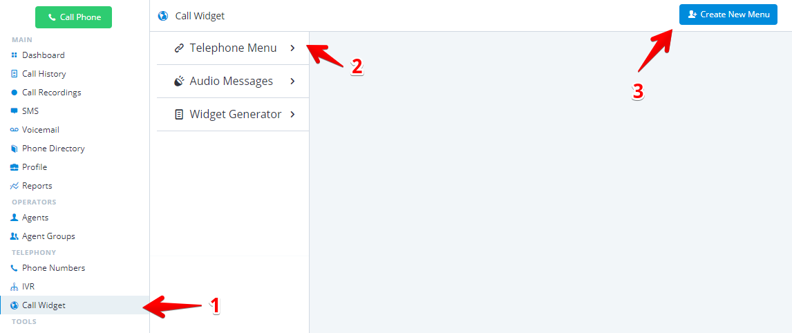 1. Go to the side bar in the dashboard and click on **Call Widget**