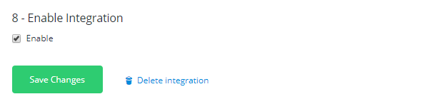 * **Check if the Integration is enabled:** Go to the last step in the Configurations tab and verify that the checkbox is enabled.