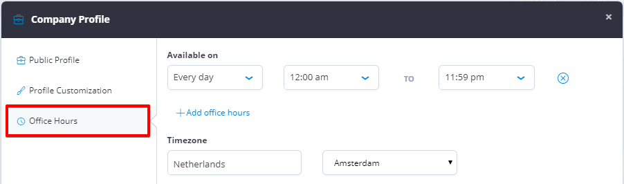 Set the business hours for your business from the **Company Profile**