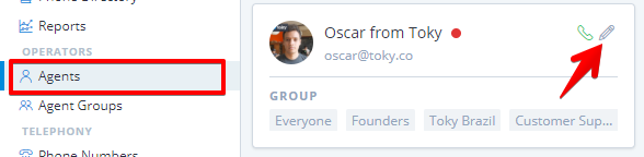 If you are an Admin, you can set this information for any agent. You must click on **Agents** and next click on the **Edit** icon.