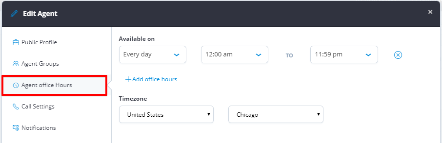Select the **Agent office Hours** tab
