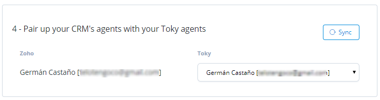 * Assign your Zoho agents to the corresponding Toky agent. This step must be done carefully, because it's used by Toky to log events to the right agent.