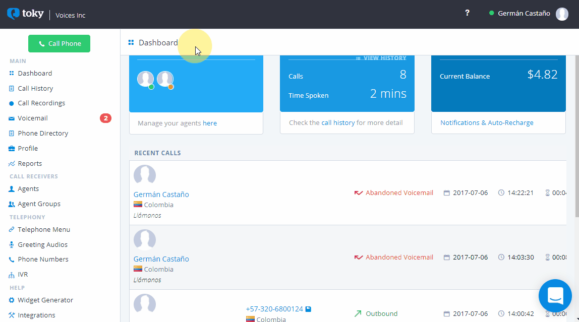 To integrate Toky with Insightly CRM you must go to the [integration settings panel](https://app.toky.co/business/tools/insightly) do the following: